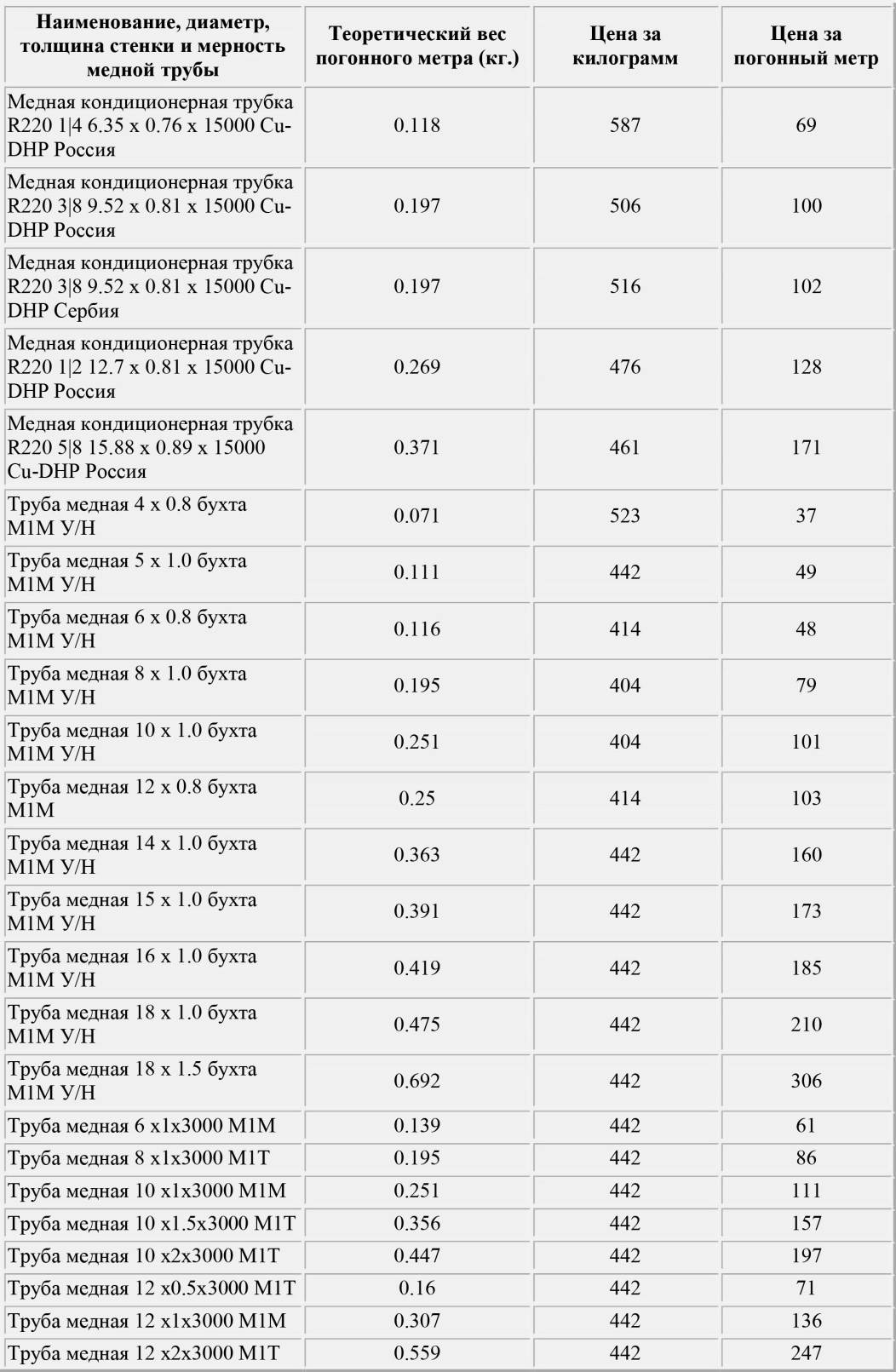 - Небольшая масса благодаря минимальной толщине стенок медных труб. Метровый отрезок изделия диаметром 20 мм весит не более 0,6 кг. Небольшая толщина стенок повлияла также на увеличение внутреннего сечения. Оно больше по сравнению с аналогичными изделиями из других материалов.