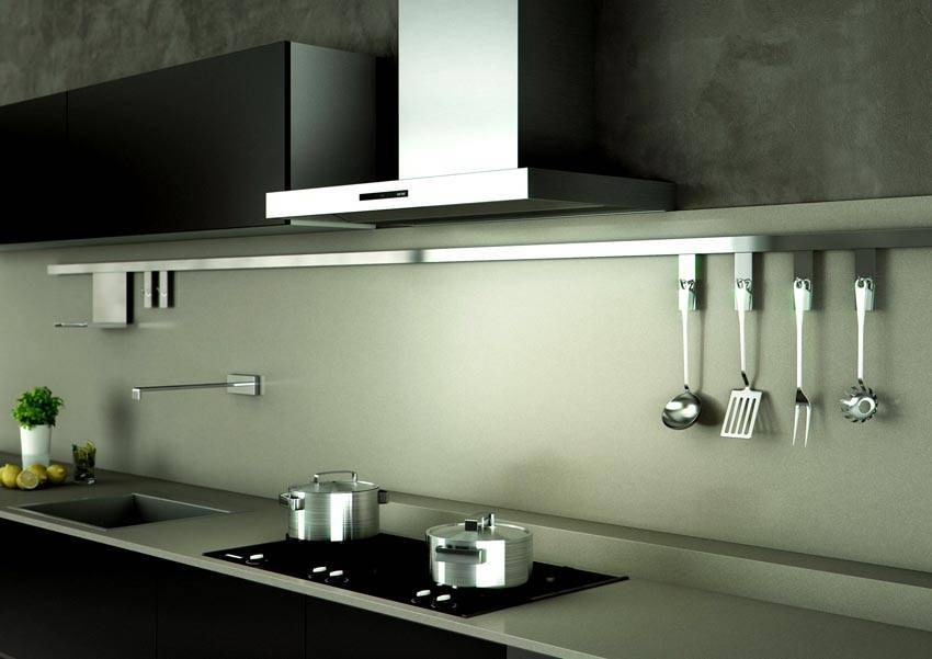 Некоторые интерьеры ввиду небольшого пространства не могут разместить классическую вытяжку, тогда устройство, встроенное в шкаф, будет идеальным вариантом. Оно занимает совсем немного места внутри мебели и позволяет дополнительно использовать пространство под хранение небольшой кухонной утвари. Некоторые вытяжные шкафы могут оснащаться встроенной подсветкой в виде ламп накаливания, которые обеспечивают комфортное пользование варочной поверхностью в любое время суток.