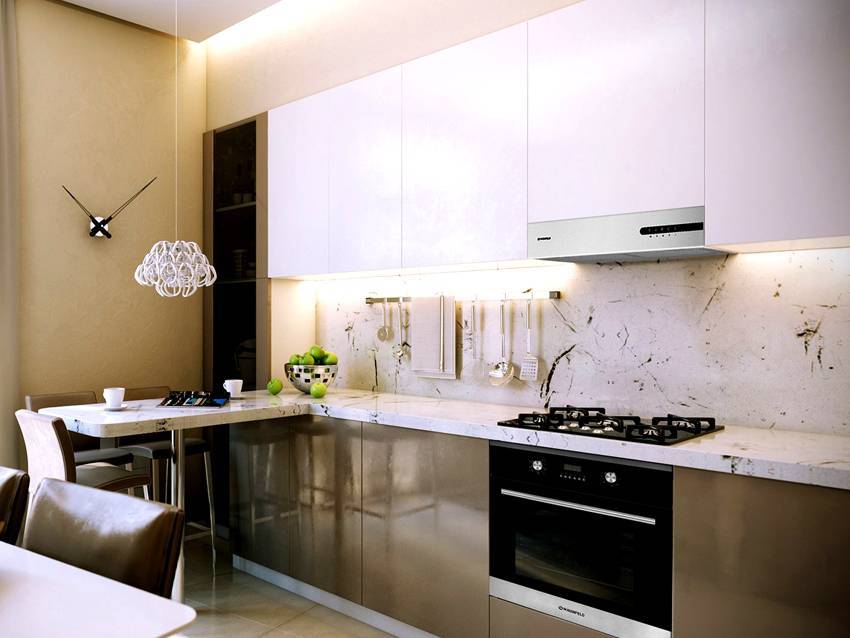 Если вы решаете проделать всю работу сами, то сначала оборудуйте кухню мебелью. И только после этого можно будет поработать над разметкой расположения вытяжки с учетом высоты ее расположения.