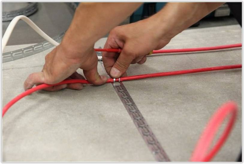 Полное высыхание пола займет 3-4 дня, после чего необходимо закрепить монтажную ленту и терморегулятор в удобном для дальнейшего использования месте. Следующий этап – укладка кабеля в соответствии с приложенной к нему инструкции.