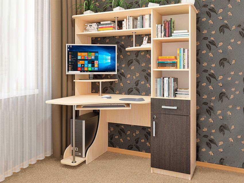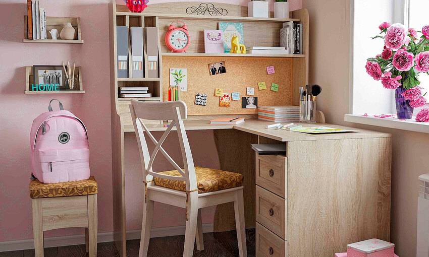 Сегодня существуют удобные угловые столы с надстройками, экономящие место в помещении. На незанятые полки ребенок сможет поставить любимые игрушки, коллекцию книг или видеоигр.