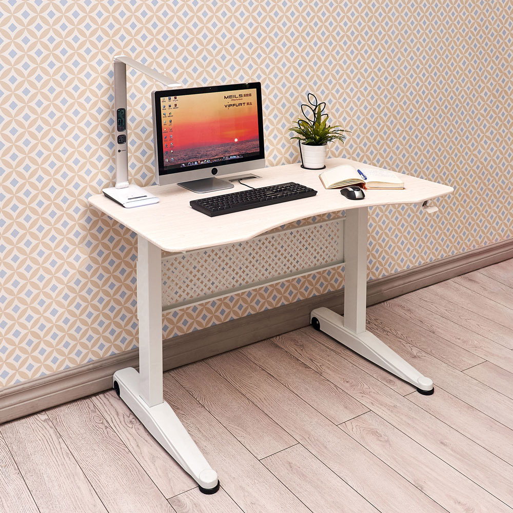 - 3. Сделать стол с регулируемой высотой положения столешницы. Столы с регулируемой высотой сегодня популярны у производителей мебели для школьников. Ребёнок растёт, а вместе с ним «растёт» и его рабочий стол – это правильный и продуманный подход. Собственно, его мы и можем взять на вооружение, проектируя компьютерный стол, за которым будет работать невысокая тёща ростом 155 см и её любимый зять ростом 192 см. Можно сделать возможным, регулировать высоту столешницы под рост каждого пользователя.