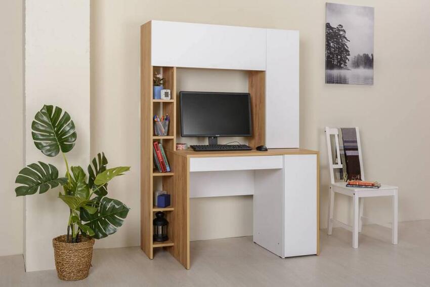 Он представляет собой обыкновенный стол с боковыми или верхними шкафами для школьных принадлежностей. Расположение ящиков определяется потребностями и требованиями заказчика.