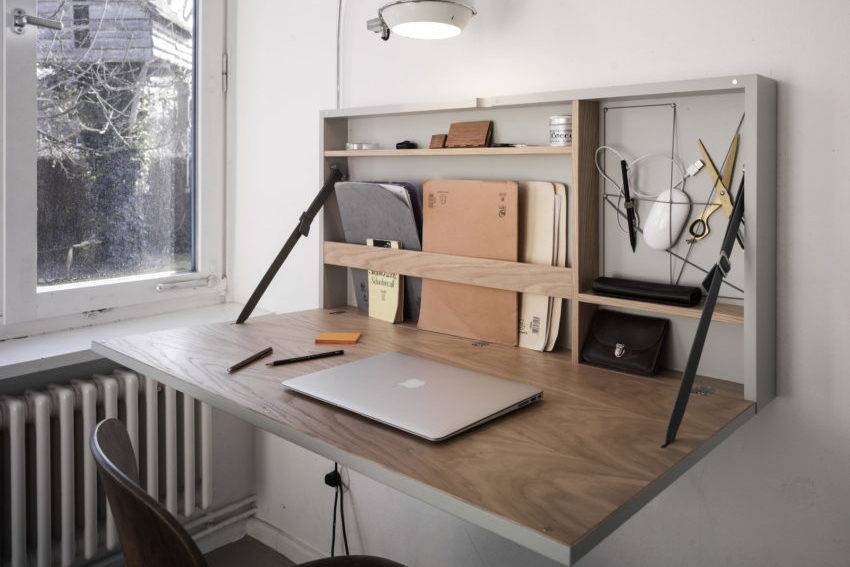 В последнее время актуален настенный письменный стол. Он не предусматривает наличия ножек, опор. Изделие крепится на стену, выполнено в стиле минимализма. Предмет содержит минимальный объем полок, шкафов, не предусматривает надстроек. Преимущества заключаются в простоте уборки в помещении, пыль не скапливается под ножками столика.