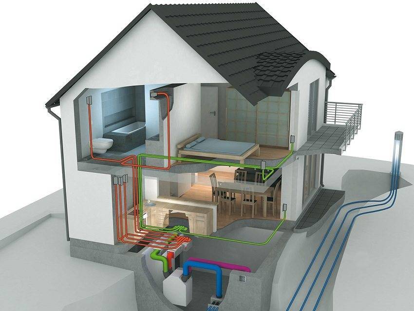 Частные дома в основном расположены за городом, где воздух, в отличие от городского, чище и не требует дополнительной очистки. Поэтому для частного дома предпочтительнее естественная вентиляция.