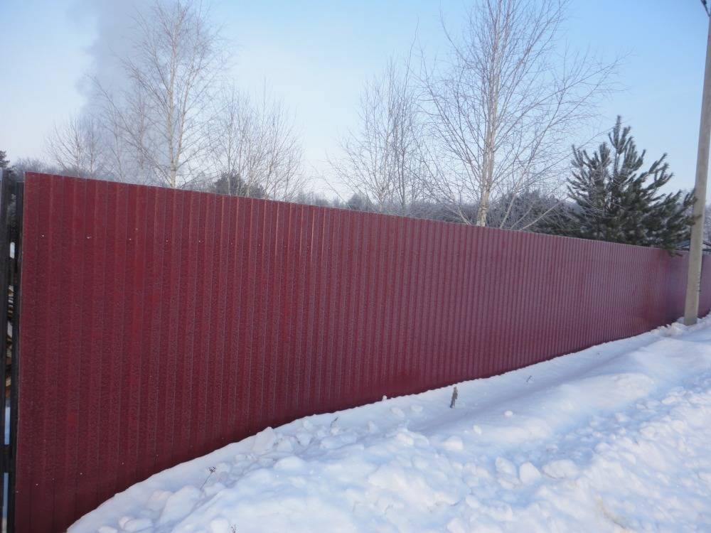 - В отличие от штакетника, этот вид ограждения способен полностью скрывать от посторонних взглядов всё происходящее на внутренней территории двора, т. е. конструкция имеет сплошной вид. Высоту забора владелец может выбрать самостоятельно, опираясь на размеры листа.