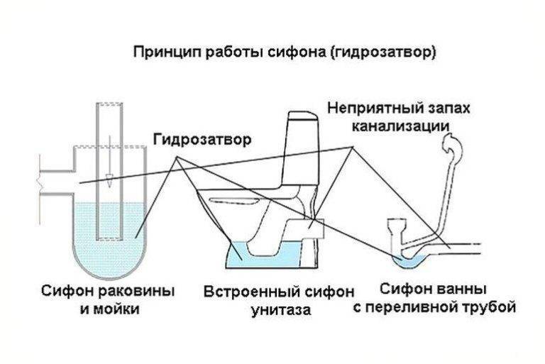- нарушение работы гидравлических затворов, отсекающих попадание воздуха из труб внутрь помещения.