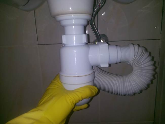 - При неправильной установке сифона гофрированная труба, соединяющая раковину с канализационной системой, не имеет перегиба и находится выше уровня жидкости. Из-за этого воздух из трубы проникает в квартиру.