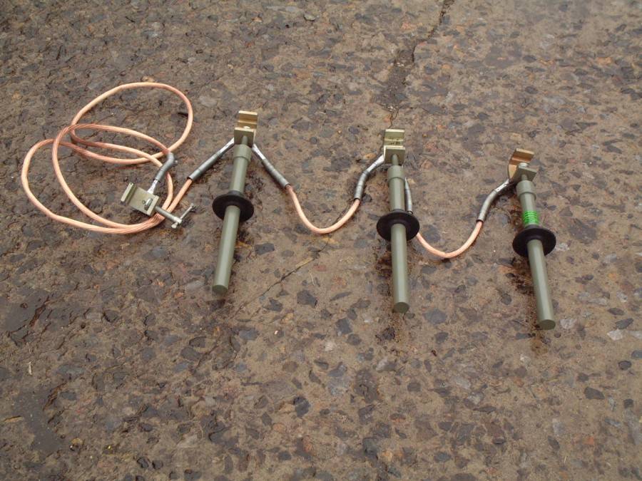 Уголки забивают в грунт кувалдой, разместив их в вершинах треугольника со стороной 2м. В итоге, верхний срез уголков должен выступать над дном траншеи на 20см. Учтите, при увеличении или уменьшении расстояния между штырями на 1м, общая эффективность контура соответственно возрастает или падает на 10-20%.