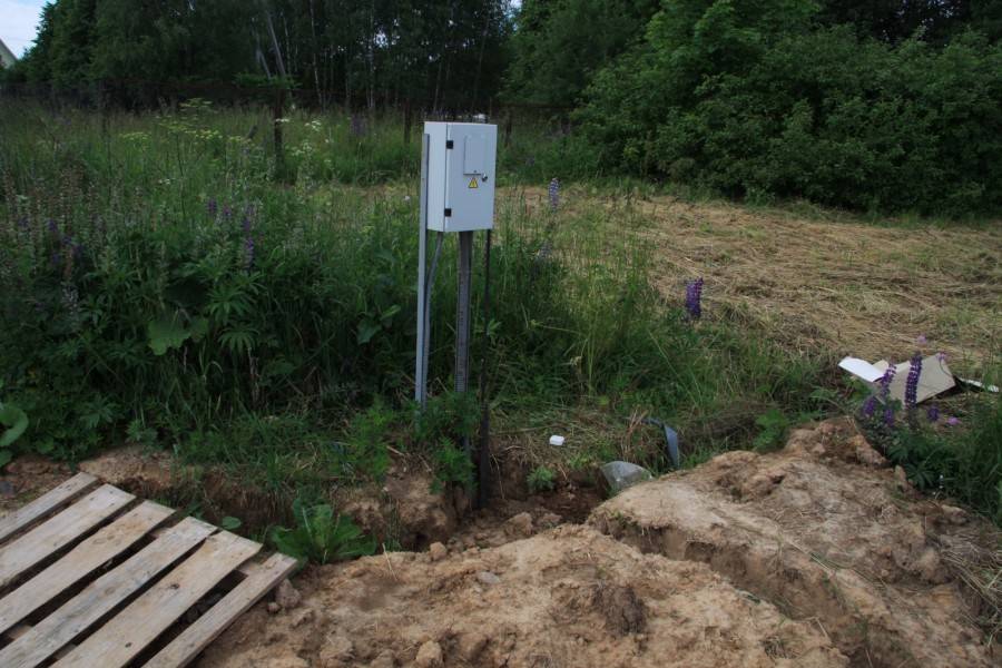 Обратите внимание, заземлитель на выводят на поверхность земли. Он находится ниже уровня грунта на 50-60 см