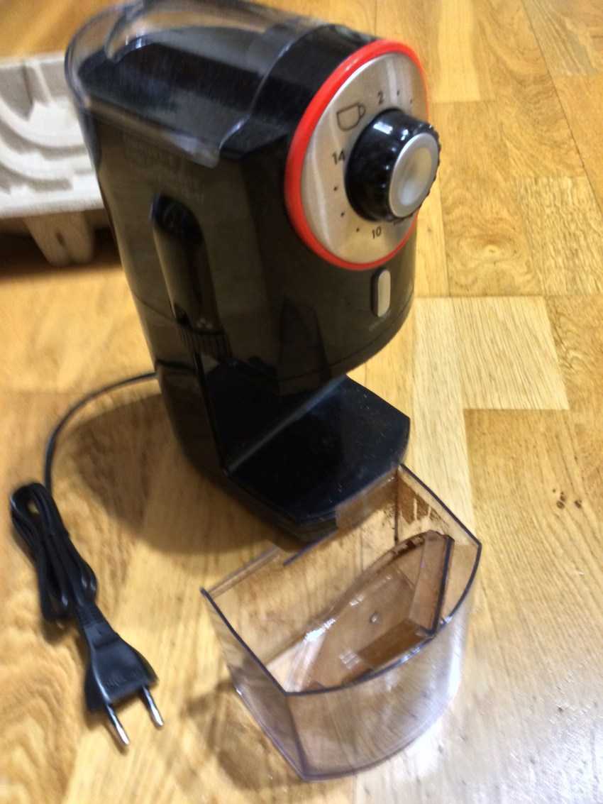 Компактное и удобное устройство прекрасно подходит для домашнего использования. Прозрачный контейнер для готового кофе удобен в использовании. Его легко вытащить или вставить в прибор. Всегда видно, сколько еще можно намолоть кофе.