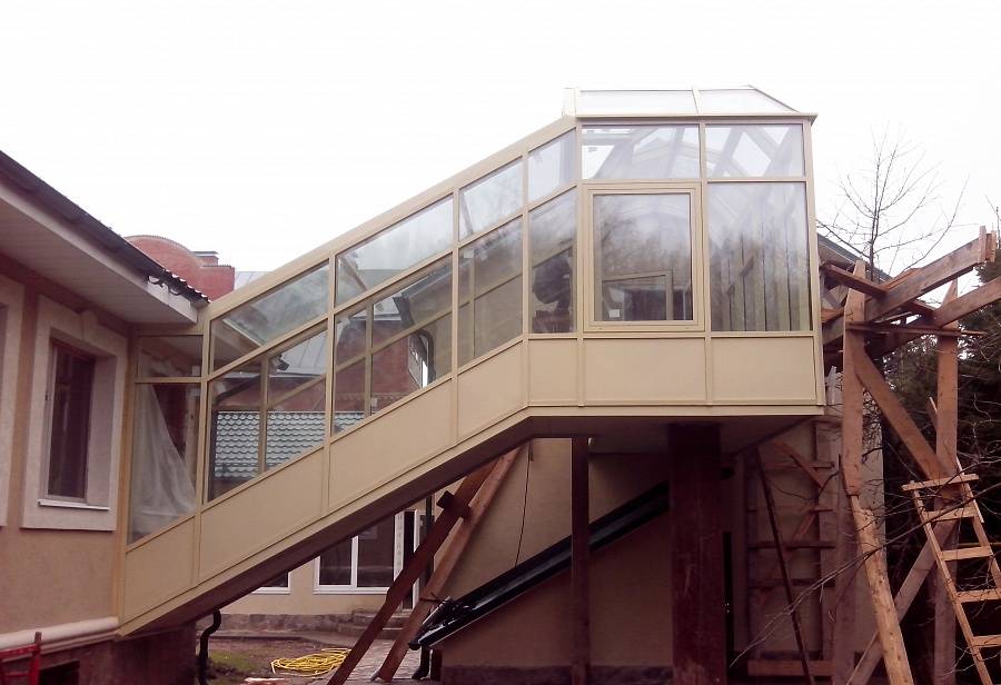 Обратите внимание на фото – для пристройки зимнего сада своими руками стеновые стойки обрезают по размеру: