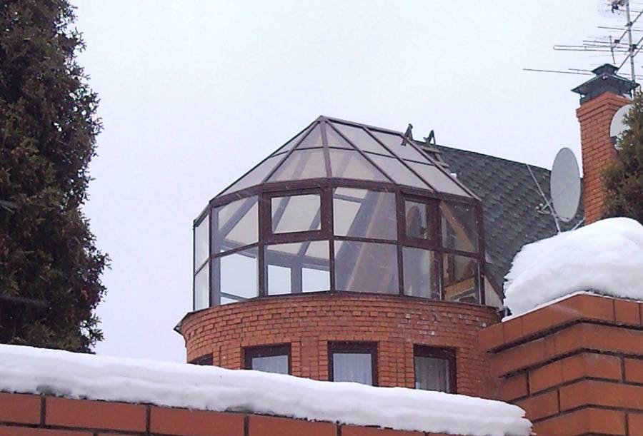 Очень важно, чтобы каркас был достаточно прочным и способным выдержать нагрузку остекления. Эта характеристика высчитывается с учетом климатических условий местности, угла наклона кровли зимнего сада, количества снежных осадков зимой и так далее